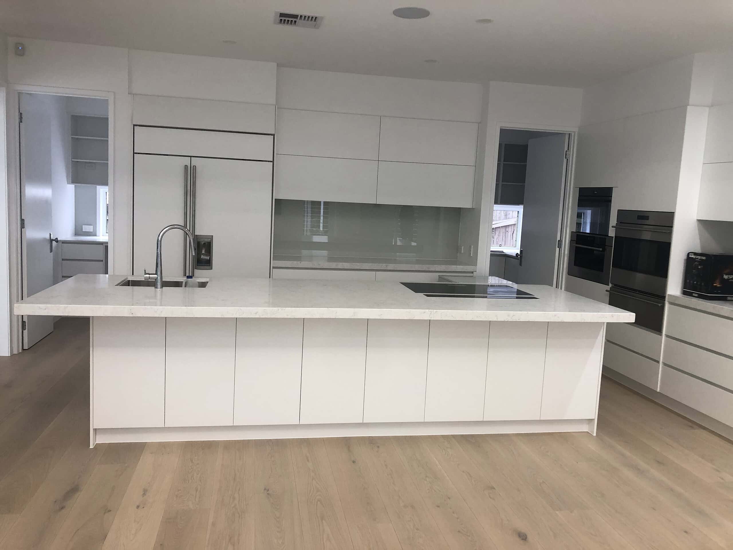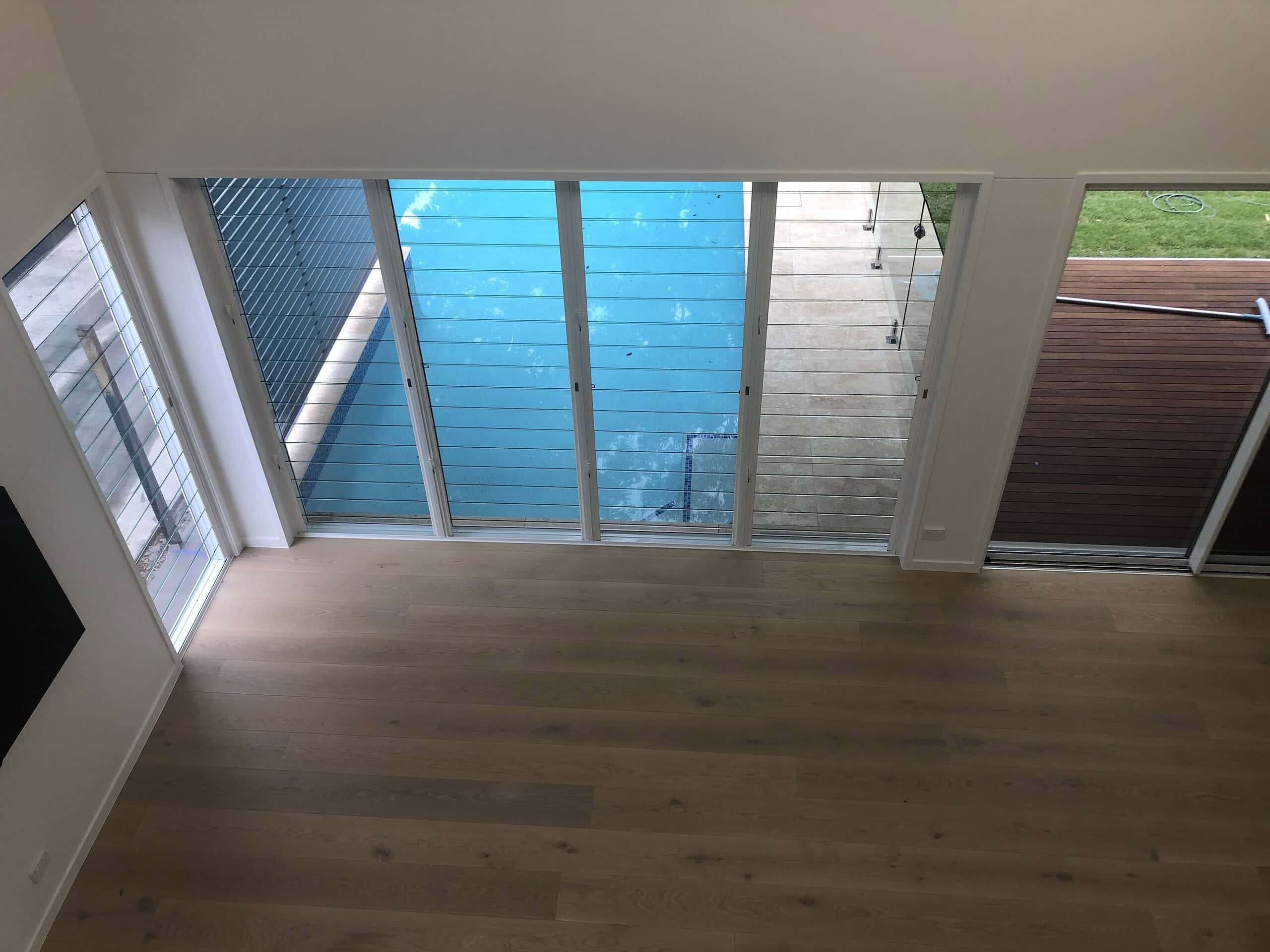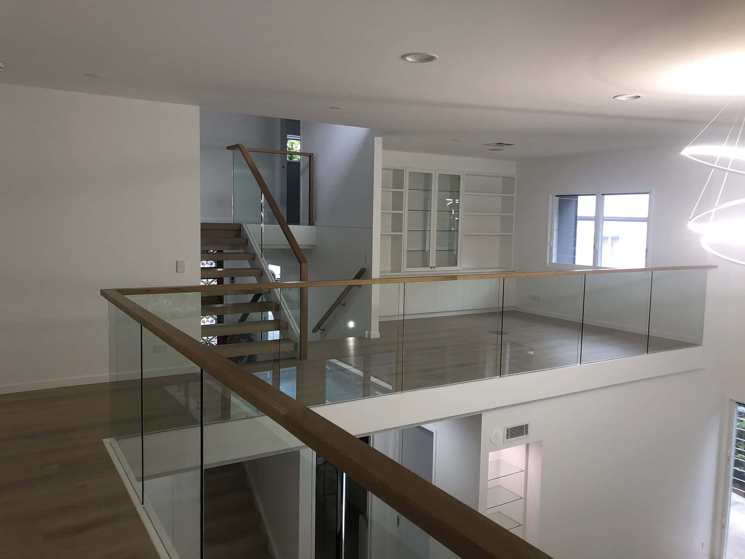 Walk through this home and you’ll notice the thoughtfulness. Timber flooring transitions seamlessly into tiles in bathrooms and carpet in bedrooms. Built-in power outlets sit flush in the timber floors. Glass balustrades with timber handrails keep sight lines clean while adding warmth.