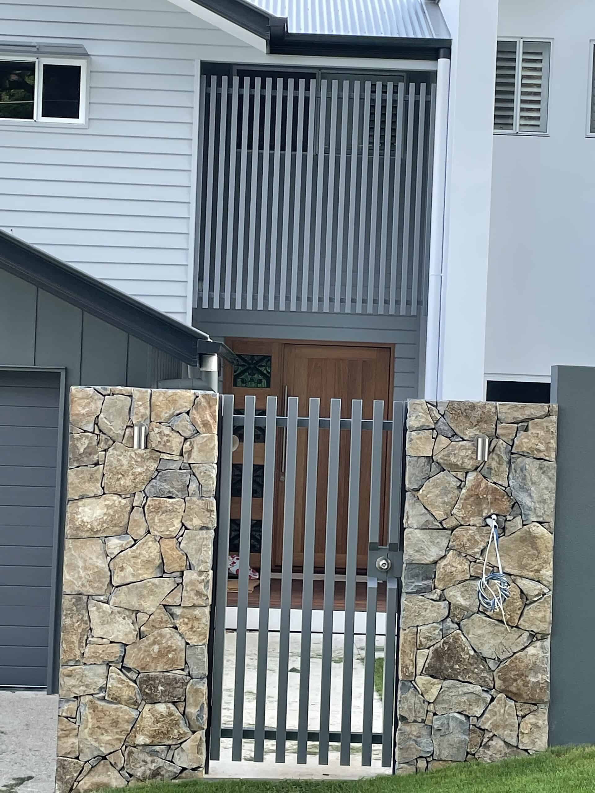The site slopes naturally toward the northeast, which became an opportunity rather than an obstacle. Enter the home at garage level through hand-pitched stone pillars and a modern slat gate. From there, timber stairs lead you down into the heart of the home.